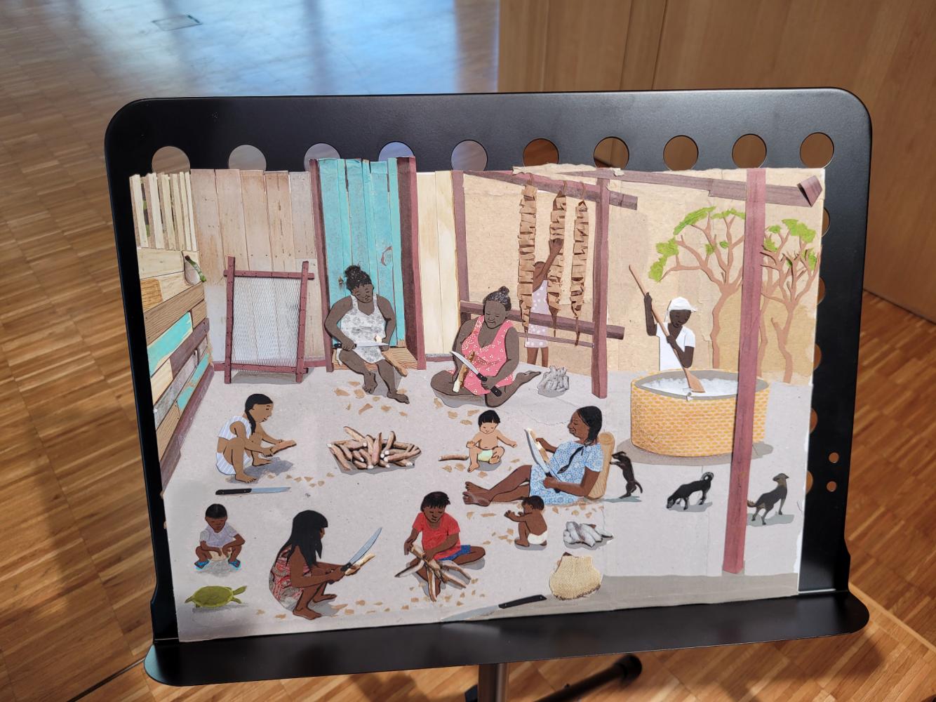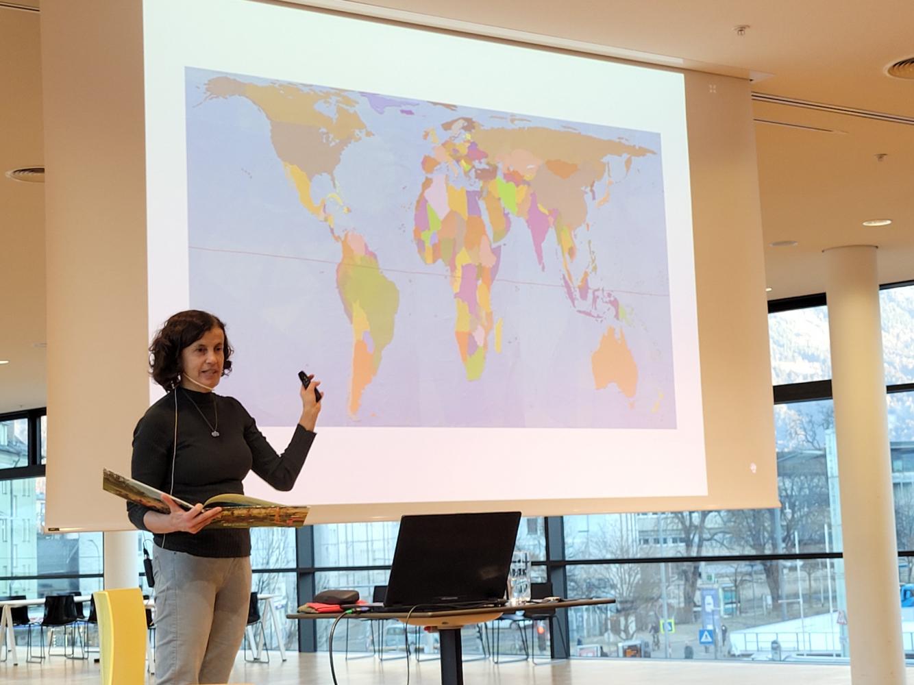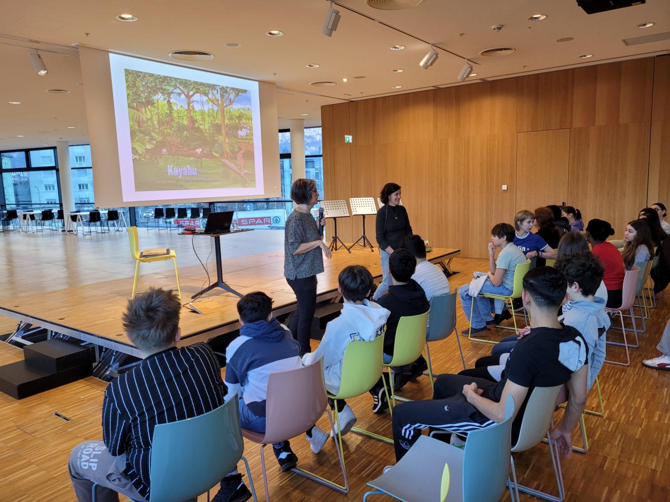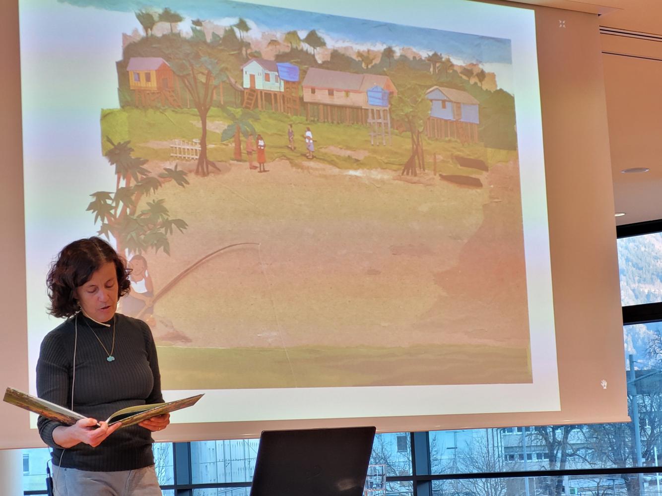 Am Freitag, den 17.01.25, ist die Klasse 2c in der Stadtbibliothek Innsbruck zu Gast gewesen. Über eine Stunde lang konnten die SchülerInnen der brasilianischen Autorin und Künstlerin Eymard Toledo zuhören, wie sie aus ihren Buch „Kayabu. Eine Geschichte aus Amazonien“ vorgelesen hat. In der kurzweiligen und anschaulichen Erzählung ging es um die unterschiedlichen Lebenswelten der modernen Menschen und indigenen Einwohner Brasiliens, aber auch um die Bedrohung des Amazonas als Lebensraum. Begleitet wurde die Lesung von bildgewaltigen Collagen aus "Papiermagie" als individueller ausdrucksstarker Stil der Autorin. Am Ende blieb noch Zeit für die zahlreichen Fragen der SchülerInnen und sogar für eine kurze Demonstration Eymard Toledos dazu, wie sie ihre eindrucksvollen Kunstwerke aus mannigfaltigen Papierresten kreiert.