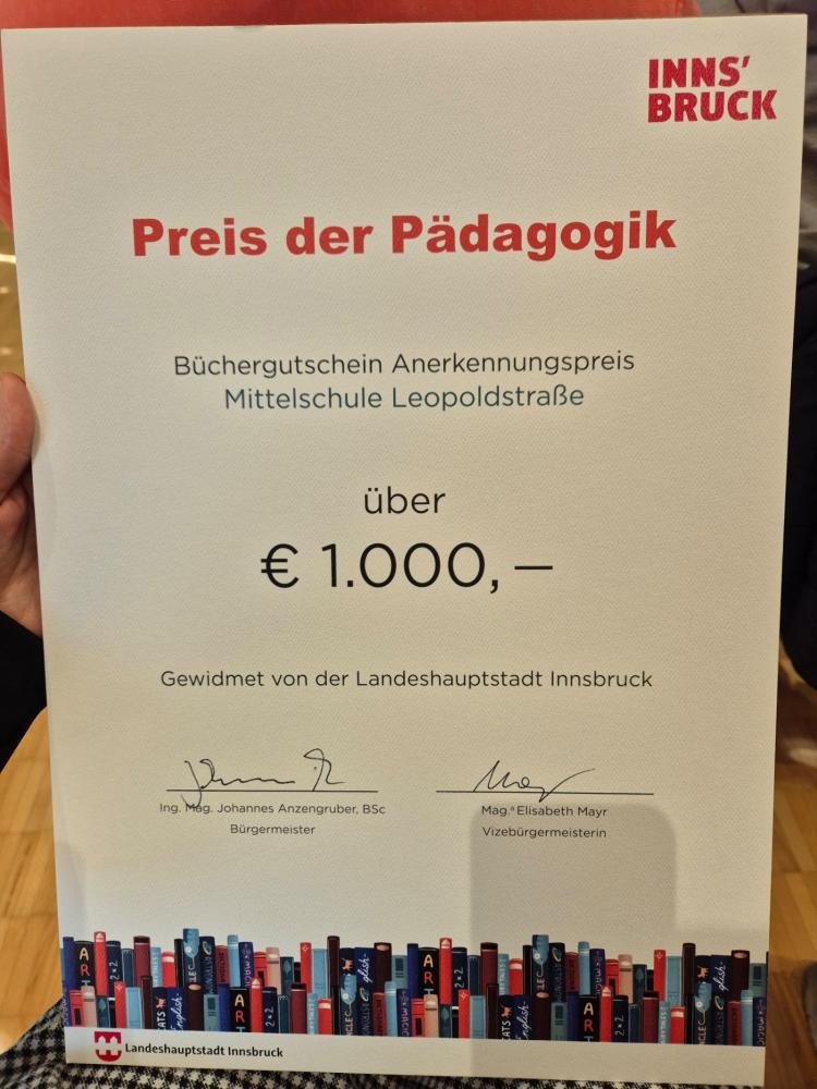 Am 14. November durften wir in der Volksschule Reichenau an der feierlichen Verleihung des „Preises der Pädagogik“ teilnehmen. Nach den Grußworten von Bürgermeister Johannes Anzengruber und Vizebürgermeisterin Elli Mayr wurden die eingereichten Schulprojekte vorgestellt – darunter auch unser Beitrag der Mittelschule Leopoldstraße.