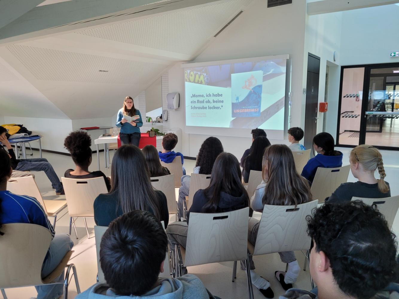 An einem unüblich schönen Freitag, den 13. hat die Kinder- und Jugendbuchautorin Ruth Byrne die Klasse 3c der MS Leopoldstraße besucht. Dabei hat die erfahrene Schreiberin aus ihrem Roman "Ungebremst" vorgelesen und gemeinsam mit den SchülerInnen viele Aspekte zu den Themen "Leben mit dem Rollstuhl" und "Barrierefreiheit als Voraussetzung für soziale Teilhabe" erarbeitet. Das Interesse der 3c ist groß gewesen und die abwechslungsreiche Stunde wie im Flug vergangen.