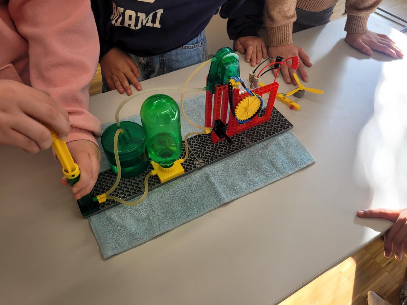 Die Klassen 1c und 1d haben am Freitag, den 7.3.25 an einem jeweils zweistündigen Workshop der Schulinitiative "Die Energiewende" zum Thema nachhaltige Stromerzeugung und Klimaneutralität teilgenommen. Nach einem anschaulich erklärten Theorieteil gab es die Möglichkeit, in Gruppen ein eigenes Wasserkraftwerk aus Technikbausteinen zu konstruieren und Strom zu erzeugen - für den Betrieb eines kleinen Ventilators mehr als genug!